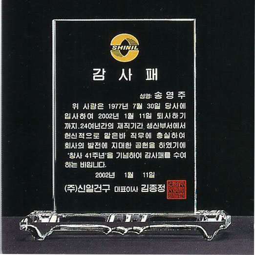 뛰어나며 일반적인 상패의 경우, 많은 분들이 크리스탈을 선호하고 있습니다.